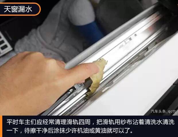 首先天窗要经常使用,这样才能避免产生异响,而平时车主们应经常清理滑轨四周,一般在使用2至3个月的时候,把滑轨用纱布沾着清洗水清洗一下,待擦干净后涂抹少许机油或黄油就可以了。需要注意的是,天窗系统中还包括许多橡胶、塑料零件,而这些材质的零件是不能与油类或黏性物质接触的,要不然会对其有腐蚀作用。