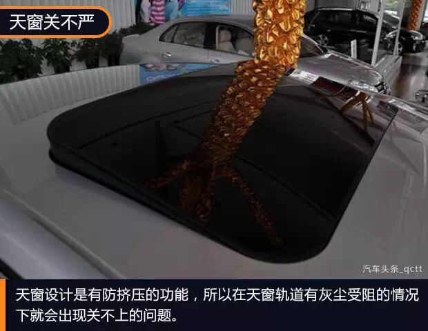 也有不少车主碰到过这种情况,天窗平时很少使用,一旦使用的时候,天窗就会发出吱吱声。发生异响是由于天窗的滑动机构是轨道式的,一般车主在使用一段时间后,在滑轨的接触面和缝隙中就会存在许多的尘土、沙粒,如果不定期的清理就会发生异响,严重的话则会磨损天窗部件,导致滑轨变形。