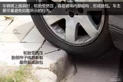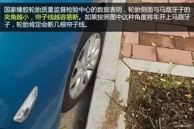 不少车主以为用胎侧快速开上马路牙子会更省力,殊不知这样做更容易弄断帘子线。上马路牙子时,必须注意轮胎角度及车速。