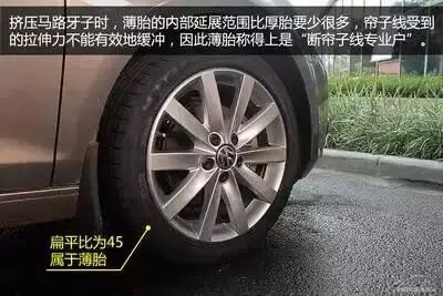 目前在售的绝大多数SUV及越野车型,均配备扁平比在60以上的厚胎;低价车型同样以厚胎作为标准配置。在一般的日常使用中,车主其实没有必要过分担心,但切不要因为贪图外观而随意改装薄胎。确实要改的话,改装后也要更加关注薄胎的状态。