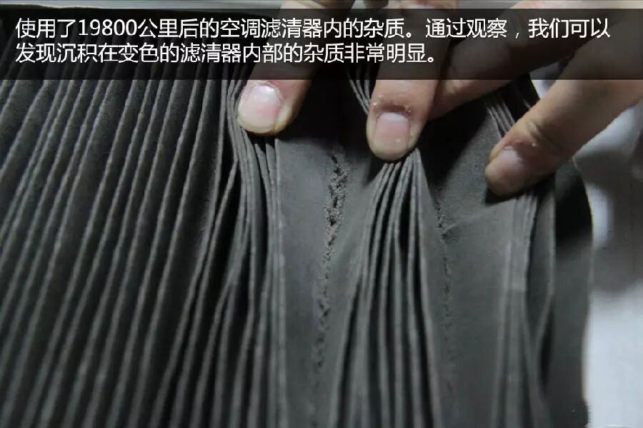 上图:空调滤清器并不是添加了活性碳材质而是一款普通型号的空调滤,因超出1万公里后更换空调滤后所呈现的效果如图所示。