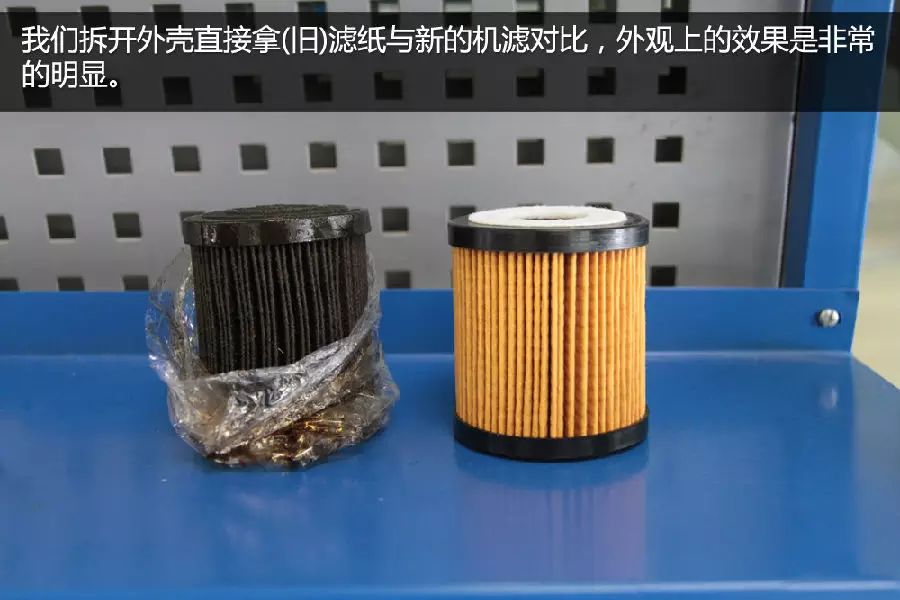 通过新旧机油滤清器对比,我们很明显看出使用7800公里后与新的机油滤清器差别。从变黑的机油滤清器 我们可以看得出机油已经变质,变质的机油流动性差,粘稠度大,阻碍发动机活塞做工,此外如果阻力大了,机油流量就会少, 润滑效果就会打折扣。