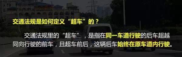 交通法规里面的“超车”,和我们平常提到的超车,其定义是有很大区别的,并不是“后车超过前车”这么简单。交规里的“超车”指的是车辆先从原车道变道,然后超越前车,最后并回原车道。车辆只有完整完成了这样一套动作,这种行为才属于交通法规条文里定义的“超车”。