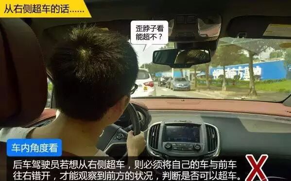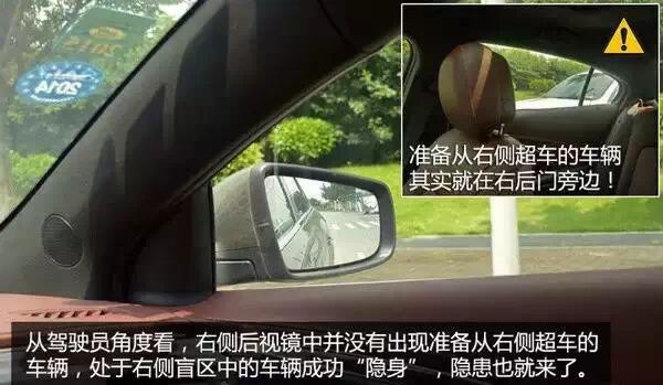 主要原因是视觉盲区。对于左舵车来说,驾驶员右侧的盲区较大,视野受限严重,驾驶员很容易忽视处于这个位置的车辆,容易与“右侧超车”的车辆发生碰撞。因此,“右侧超车”被交通法规明令禁止也就不难理解了。