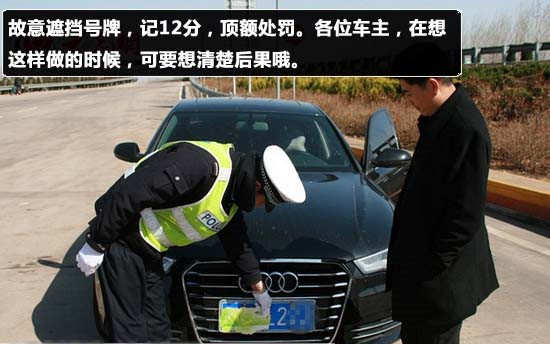 按照规定,有意遮挡号牌,记12分,顶额处罚。各位车主,在想这样做的时候,要首先考虑是否值得,不要图一时的痛快,而换来不必要的重考,因此,希望各位有此习惯的车主要谨慎。