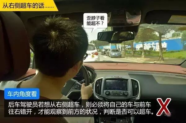 开过车的朋友应该都会有这样的体会:后车驾驶员若想从右侧超越前车,则必须将自己的车与前车往右错开,才能观察到前方的状况,判断是否可以超车。