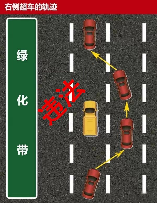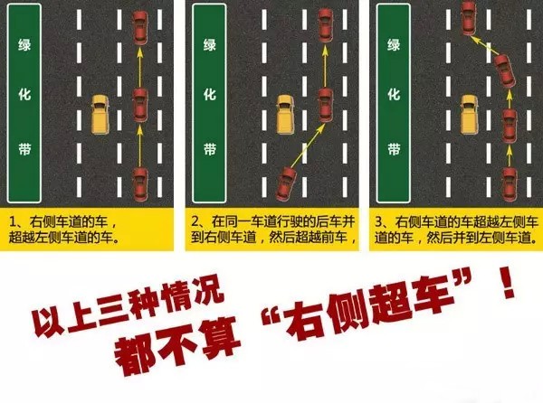 第二步:根据定义看事例,下面这种情况才是“右侧超车”。