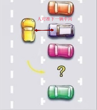 将车身调正,目的是将自己的车调整至与旁边的车辆之间的距离保持在1.5米左右