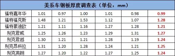 文章开头提到的一个普遍观点认为,日系车钢板较薄而德系美系车钢板相对较厚,那么实际测试结果是否如此呢?