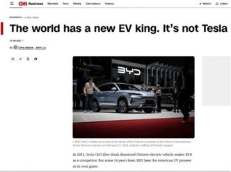 这一里程碑式的反超,引发包括CNN、CNBC、BBC在内的多家国际主流媒体高度关注与密集报道。美国有线电视新闻网(CNN)直言:“世界迎来新的电动汽车王者,这一桂冠的拥有者并非特斯拉”;英国广播公司(BBC)亦在报道中指出:“中国比亚迪已超越特斯拉,登顶全球电动汽车销冠宝座”。从国内王者到全球领跑,比亚迪向世界证明:中国智造,可以!