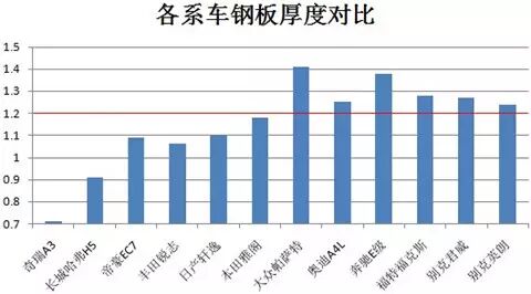 附:国内95款汽车钢板厚度平均值对比