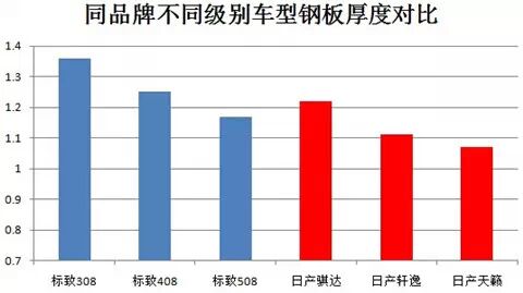 文章开头提到的一个普遍观点认为,日系车钢板较薄而德系美系车钢板相对较厚,那么实际测试结果是否如此呢?