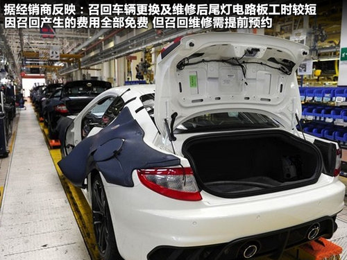 法拉利玛莎拉蒂汽车国际贸易(上海)有限公司从2012年2月8日起通知受召回影响的客户、相关客户可以与距离他们最近的玛莎拉蒂特许服务中心取得联系以安排免费进行后尾灯检查或可能更换。