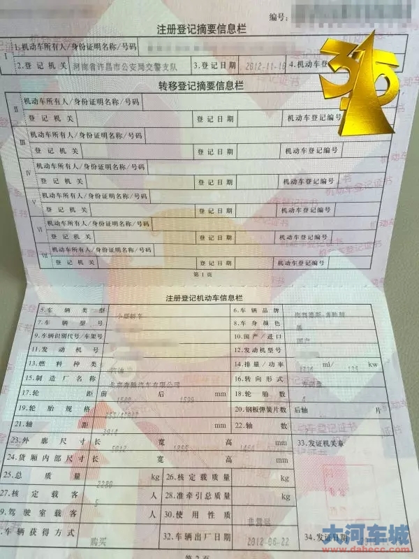 ——汽车注册登记本