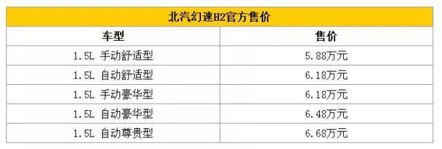 北汽幻速H2正式上市 售5.88-6.68万元