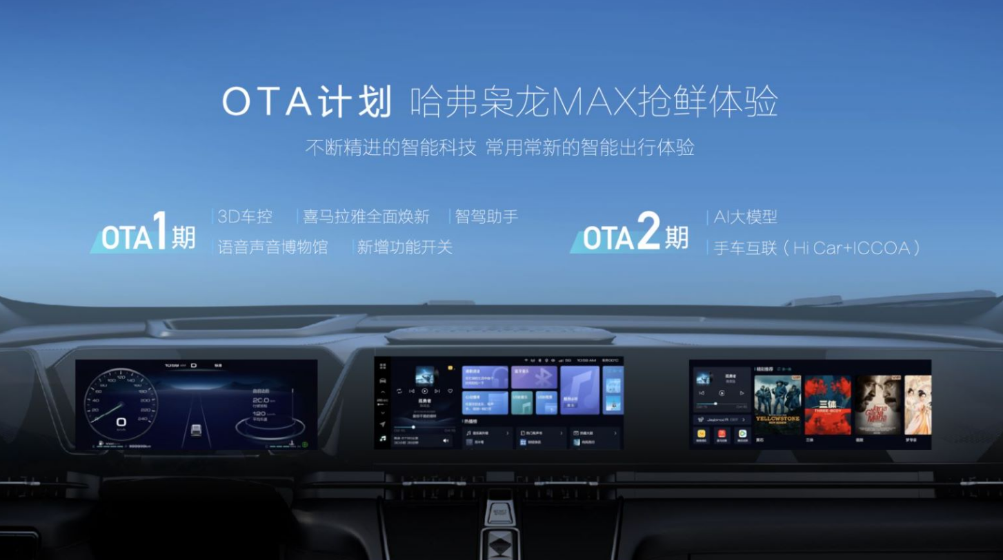 此外,新能源车型的核心优势在于智能化,而能否通过有效的后期OTA升级,带来具有革新意义的产品体验,显得非常重要。在此次发布会中,哈弗品牌宣布了哈弗枭龙MAX的OTA升级计划,一期将新增3D车控功能,并实现车机系统的全面焕新,带来更强的便利性与趣味性,预计将在今年三季度完成推送;二期则引入AI大模型和手车互联,真正令科技成为便捷生活的助手,覆盖至用车细节的方方面面,同样将于年内完成。
