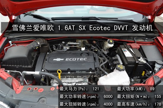 动力详解:新款爱唯欧搭载两种动力,1.4L和1.6L发动机,1.6L发动机与通用科鲁兹采用的1.6Ecotec型发动机完全相同。“Ecotec”是通用汽车基于技术、环保和经济性理念开发的高效率发动机。作为通用汽车发动机领先科技的代表,Ecotec1.6L发动机由通用欧洲主导研发,是一款高效环保的4缸引擎系列,通过双连续可变气门正时系统和可变进气岐管技术的运用,Ecotec1.6L发动机具有低转速大扭矩和高升功率的出色性能,1.6L发动机升功率高达54kw/L,此外ecotec1.6L发动机拥有卓越的燃油经济性,且静音效果出色。而最新推出的1.4L发动机则与新赛欧上的S-TEC型发动机如出一辙,这款发动机技术成熟可靠,采用VGIS:可变岐管进气系统、PDA:可变气流角度进气阀门组提升进气效率与燃烧效率。