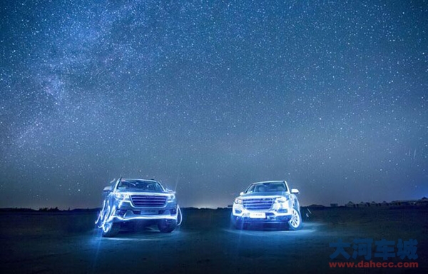 “云沙泱漭天光闭,河塞阴沉海色凝。”在七星湖的夜晚,哈弗H8、H9与绚丽的星河完美融合。车身完美的线条与壮美星空融为一体,高光通量的氙气大灯在深邃绚丽的星河衬托下格外亮眼;在长曝光和小光圈的调节下,原本点缀于夜空的星光更加夺目,而梦幻般星光环绕在车体周身,璀璨夺目。